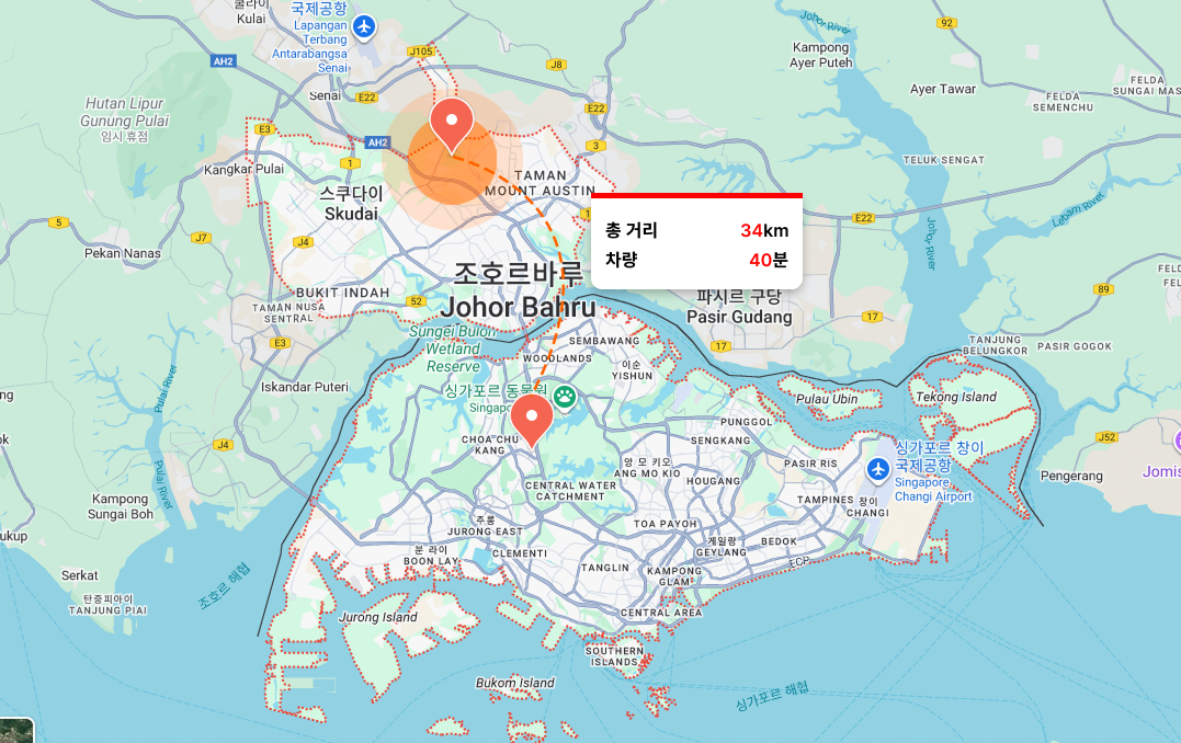 말레이시아 남부 조호바루. 싱가포르 중심지에서 약 34km (차량 40)